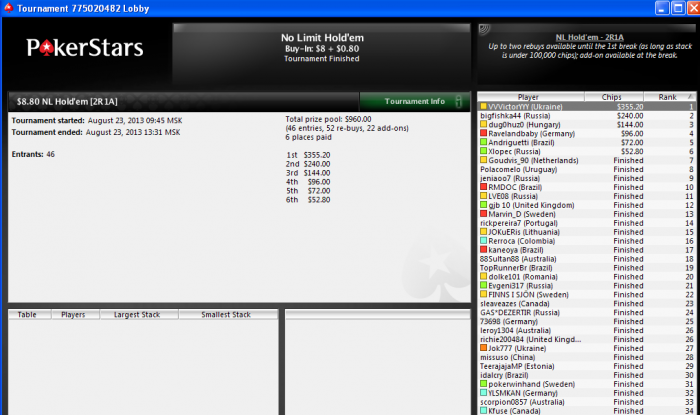 Мы так и сделали, выиграл VVVictorYYY , прошел час перевода не последовало, я нашел его за столами и напомнил о нашей договоренности, в ответ тишина (до это случая мы частенько общались за столами ).