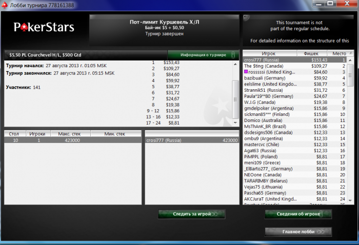 P.S. Турниры с такими высокими бай-инами я играл только 1 раз, да и то в холдем. Может для "местных" это повседневные турики, но для меня, как игрока, у которого в кассе не было больше 2к это много.