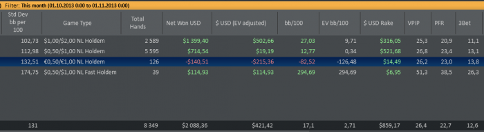 Результаты за сентябрь (дистанция ни о чем + апстрик): До сентября суммарная дистанция по всем румам (играл почти все румы от старзов до ПКР) на нл100 около 200К рук и EVbb/100 = 3 .