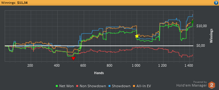день для покера вроде бы не плохой сделал пару ошибок гдето комуто доехало но сдавали не плохо так что жаловаться не будем.