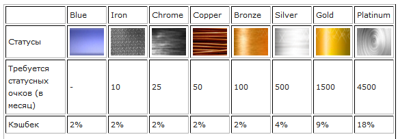 Таблица говорит о том, какой процент возврата от вложенного рейка ты будешь иметь при соответствующем статусе.