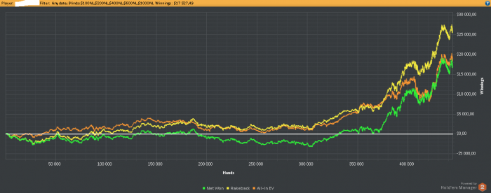 Ситуация такая. Год играл на Lotos poker, с лимитов нл 30 до нл 400.