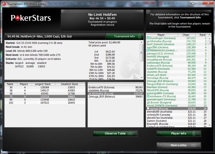 если на раз-два, то круто конечно) просто я тут попробовал 3,5+р на дистанции в 15 турниров сделал топ-2 и топ-3 плюсанул на 500(а я как бы фиш), а потом почти все залил. правда на диспу валить я бы не стал, произошло это из-за игры на средних лимитах МТТ и несбалансированной