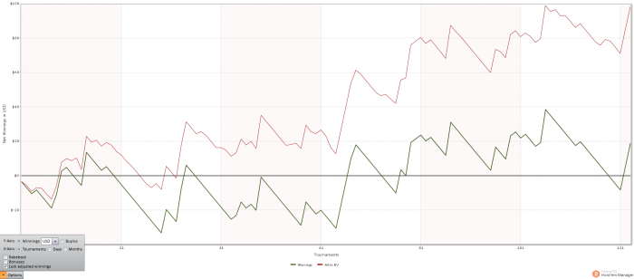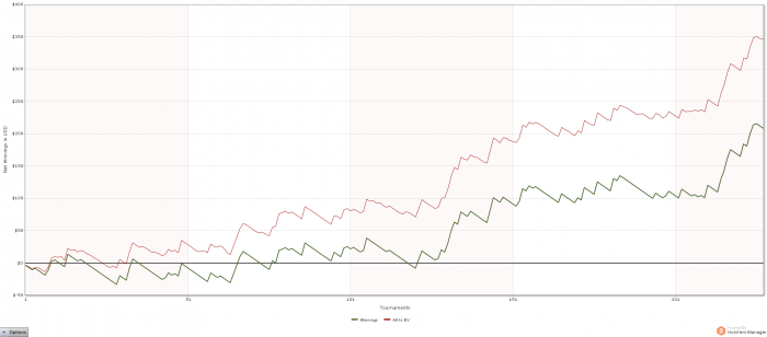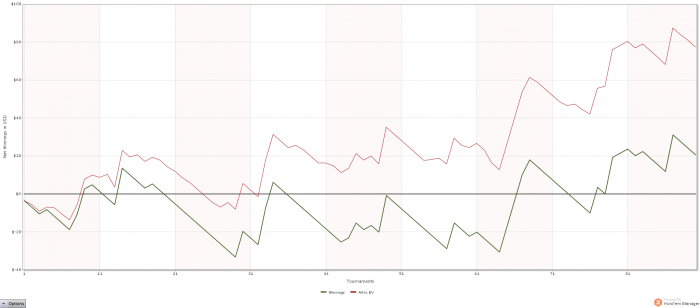 Из последних сил пишу...)) Имели сегодня меня знатно, правда под конец получилось занести пару туриков и отмазаться в 0. Также сегодня попробывал лимит 7$, разница между полями огромна, на семерке игроков с адекватными статами раза так в два больше, да и реги уже более матерые, исполняющие вполне плюсовые мувы, так что придется не легко. Лимит 7 буду подключать в небольших количествах дабы не попасть под суровую реалию диспы.