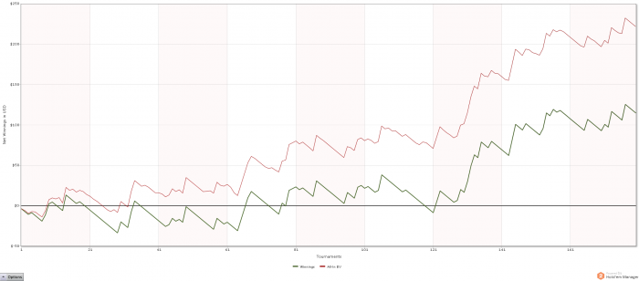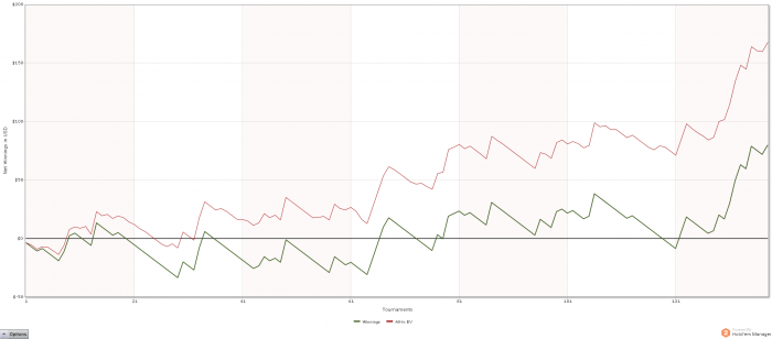 Усем доброго вечера ! Вчерашняя сессия была нереально замазочной, за всю свою покерную историю ниразу не проигрывал такого кол-ва доминаций за 2 часа катки, в итоге тильтуя устроил пиханину, которая временами доезжала)), получилось закрыть сессию в 0, что безусловно радует. Это был первый день ,когда я действительно мультитейблил играя 8 столов, до этого играл максимум 4 стола в целом моя нервная система была не готова к такой диспе, да и игра немного хромала, все таки мультитейблинг 8+ серьезно сказывавается на уровне игры и показывать A-game очень сложно катая большое кол-во столов. Цель на сегоднейшний день - самоконтроль ,буду стараться абстрагироваться от денежной составляющий игры, да и теперь я знаю ,что даже при самых негативных сценариях можно закрываться в 0...