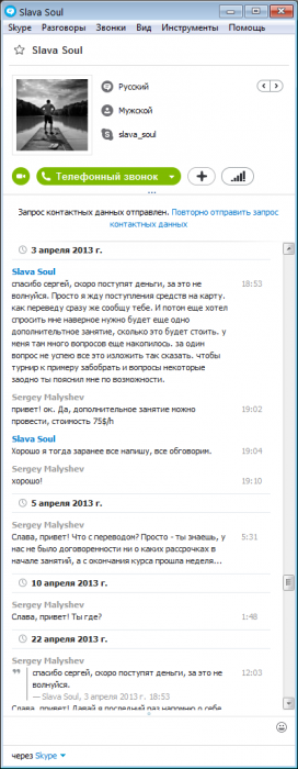 Вкратце суть конфликта: пользователь обратился ко мне в конце марта за обучением, в течение трех недель были проведены оговоренные занятия, однако полную оплату я за проведенные занятия не получил, текущий долг составляет 400$.