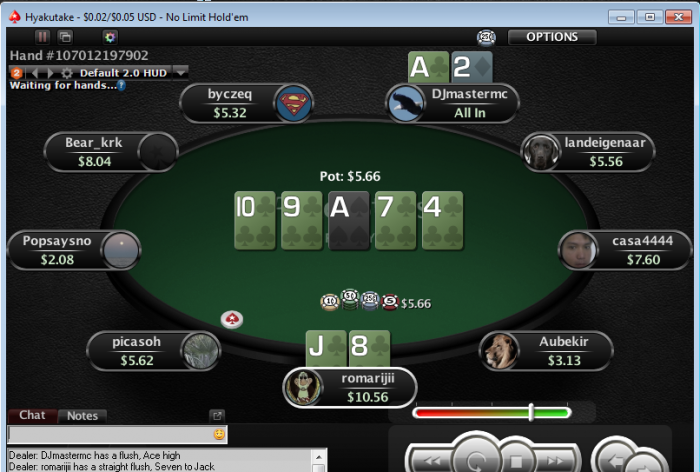 Хотелось бы услышать ваши размышления Опп вроде адекватный $0.02/$0.05 Zoom No Limit Holdem PokerStars 9 Players Hand Conversion Powered by weaktight.com