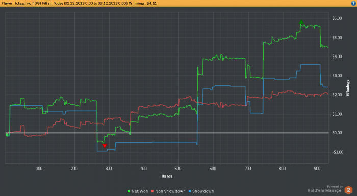 Привет всем. Зовут меня Юра. Вообщем не буду писать о себе, что я такой, сякой. Просто поставлю цель и достигну ее. Цель: с 13$ до 110$ Дисциплина: кеш нл2 zoom (когда будет 80$, перейду на нл 5) Срок: до 15 декабря включительно Софт: HM2 Играть буду сессиями по 1 часу, по 2-3 стола в zoome. В день буду стараться играть больше 2К рук. Винрейт думаю иметь от 5. Вообщем желания огромные, а сбудутся ли они? О результатах отписываться буду каждый день. Вперед!!!