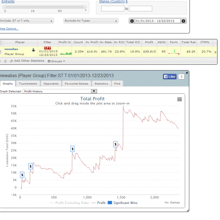 Об офлайне: считаю, что выполнил оптимальный план на 25%) Был только на кипре, зато на 4х сериях. 3 из них отыграл в +, особо не считал, но тыщь 40-50 профитом вероятно нажил. Но главное, что там весело. Познакомился с кучей народу с форума, все на редкость приятные ребята и отличные собутыльники!:) Кстати выигрыш браслета по стаду, был бы не возможен без поездки на Кипр. Так как именно там я познакомился с лучшими игроком в мире в хай лоу разновидность этой игры. В 2014ом году 100% буду больше ездить, желательно по другим местам. Хотя и Кипр еще обязательно посещу:)