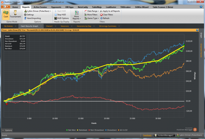 Вечерняя сессия состоялась в принципе удачно, неожиданностей не было особых, единственное, яма на графике выставления постфлоп и переезды на ривере как обычно, но это нормальное явление. Хотя смотря на график выставление в мою пользу. Завтра продолжим, будет утром сессия и в обед.