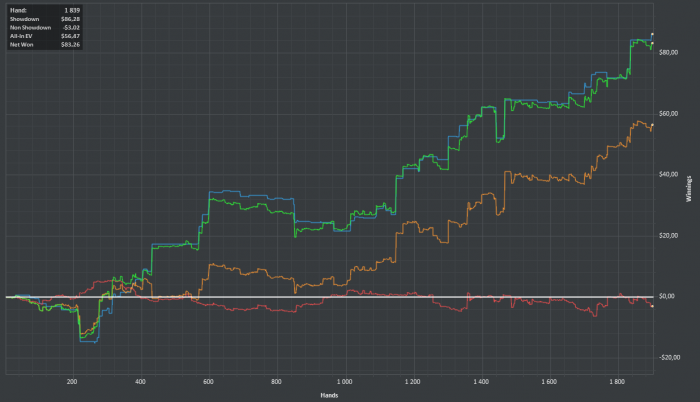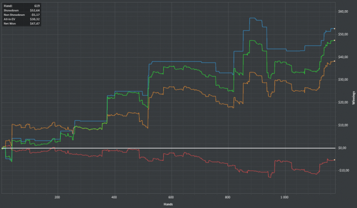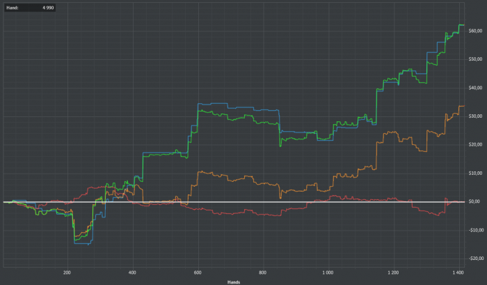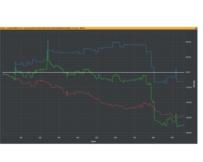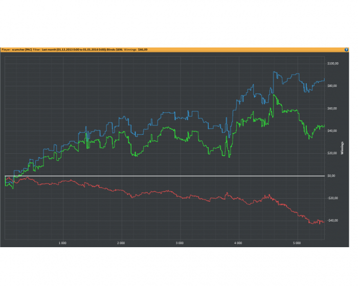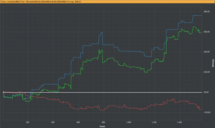 Всем привет! Бедный студент, играющий КЕШ 6мах по бсс, решил устроить марафан, дабы было стремление к поставленным целям, а цель у меня такие: За первый месяц +500$ За второй месяц +1000$ За третий месяц +1500$ Вот несколько графиков : нл6 нл10 нл20 Сейчас играю на 888poker, при построении комфортного стека для игры на нл50(~2500$), буду переходить на pokerstars. На данный момент имею в кассе 200$. Постараюсь отписываться в теме, как можно чаще. Поехали!