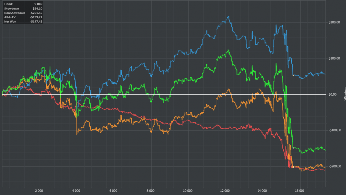 Эх, ребятки.. Случился у меня гиганский даунстрик.. Дело было 2-го числа, после UPa. Играл около нуля, в небольшой минус, прошло пару бетбитов, но я все равно был спокоен; продолжал играть дальше. Далее пару часов минусовой игры, естественно как любой фишой игрок в мелком тильте, я решаю подняться на лимит выше, чтобы отыграть, для начала это был nl20, опять же игра шла все хуже и хуже, усталость, тильт, ночью... Потом мне позвонили и просто убили весь настрой одной очень не хорошей новостью. Складываем все составляющие, появляется угнетенное состояние и переход на nl50 с 3БИ. Нашел самый фишной стол, где люди играют чуть ли не с каждой рукой, то и дело переблефывая самих себя, в тот момент и я подумал, что отыграюсь, увеличу свой бр в разы.. Но оказалось все совсем по другому После часа игры на моем осталось ровно 0$. Прошел день. Просыпаясь утром, в голове неугомонно вертится мысль о покере, тогда я и вспомнил, что у меня остались очки FPP на STARSe, их было чуть больше 500.. Решаю попытать удачу и отмыть их через сателлиты на sunday storm (235fpp). Открываю 2 окна, первый сат. без проблем поддался мне, во втором удвоился и думал, что все, еще один сат. за мной, но как обычно случается, когда думаешь, что победа вот вот уже в твоих руках, тебя жестко переезжают, как случилось и у меня. раздали мне , как вы думаете, что раздали сопернику? Конечно , у меня остается еще живой стек, но через раздачу случается та же ситуация, с тем же соперником и я вылетаю на 3 месте. В итоге у меня в кассе 11Т$. Самое элементарное отмывания, как я посчитал - это снг 0,25с на 45/90чел. Открыл 29столов(7,25$), был дикий гринд, но ненапрасный. Перекинул я 35$ на 888, и играю второй день, добил бр до 100$. Посмотел достаточно сильный психологический семинар о покере, в том числе и о тильте. Буду впредь следовать советам и уходить с поля боя с минимальными потерями! ВСЕМ УСПЕХОВ!