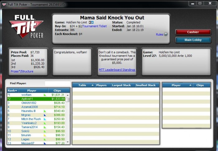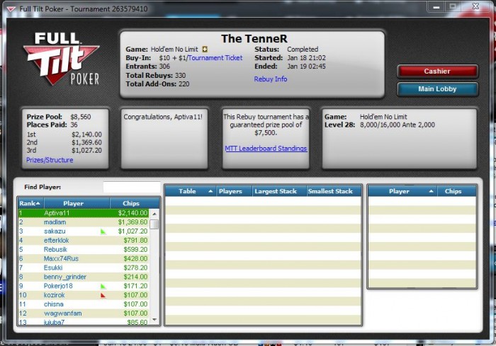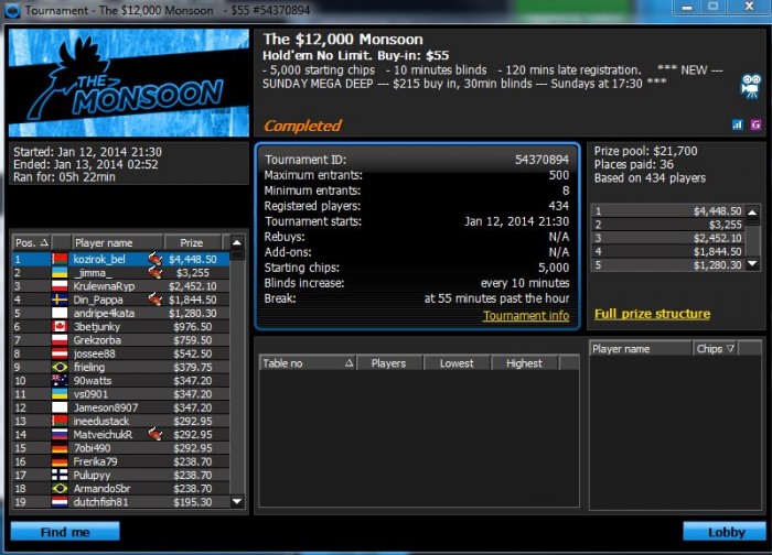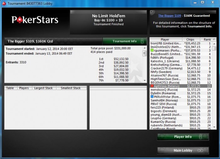 Опять чутка не хватило в крупном турнире. Уже 3 неделю ходим в районе предфиналок то тут, то там, но пока что только довольствуемся малым (AQ<K9s)