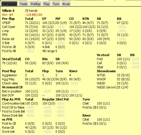 думаю фолд ривер , ибо статов мало чтобы делать выводы о спектре его флоата ривера , да к тому же на ривере у него вполне может быть тьма Ах и 7х рук. и хотя парень вроде бы и не простой , агр высокая на ривере , ввсф высокий а втсд низкий - но выборка считаю слабовата