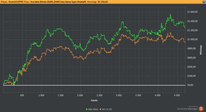 Здравствуйте!Предлагаю пакет на дистанцию в 40k Омаха Ха 0.25-0.50, пакет предварительно продаю, поскольку бекер еще думает продолжать ли предыдущий https://forum.gipsyteam.ru/backing/topic?tid=84792 Как видно не плохой стрик накрыл за последние 35000 рук.Графики за все время, на фтп играл впервые только в последнем пакете, поэтому рук мало совсем.Условия 50/50 профит, фпп в призы. Пул-$2000, можно траншами.