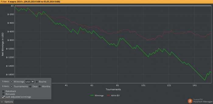 5) В случае просадки банкролла на 2000$ игрок спускается на лимит ниже(15$) и играет там до увеличения банкролла до 2000$. После чего вновь играет 30$. В случае очередной просадки цикл повторяется и так далее.
