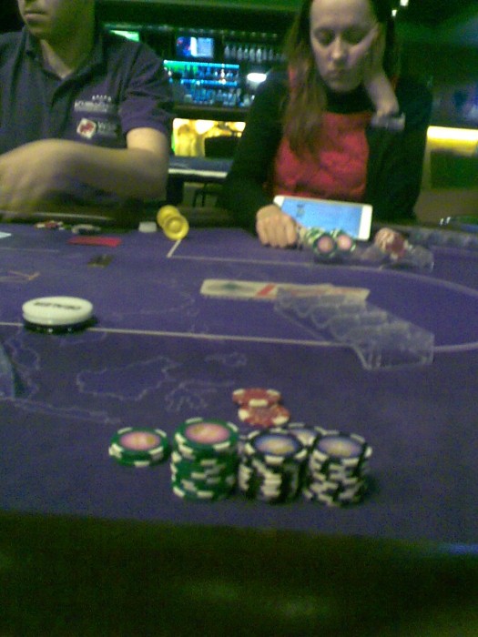 15-гоЗалезла с 1000 гривен через 2 часа ушла 3600. Сидела с Евгенией Березюк за одним столом и еще одним регом который играет на лимите 25/50 гривен.