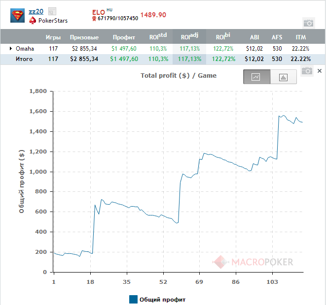 Всем привет! Меня зовут Александр. Mне 26 лет, я из города Йошкар Ола, республика Марий Эл. Требуется полный Бекинг на МТТ Омаха, фризы до 22$ и ребайники до 4.40$ включительно. Исключение МТТ за 33$ PLO будет играться всего 1-2 раза в день не больше. Откаты обговариваются индивидуально. Аби ~ 18$ Готов отыграть любую дистанцию, от 500 МТТ с перерывом на рождение сына (должен родиться в апреле). После чего готов продолжить сотрудничество. Вопросы и предложения в лс или в скайп - zz20ps Статистика по МТТ Омаха: