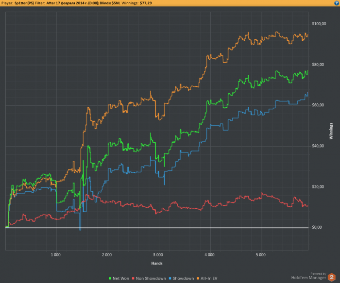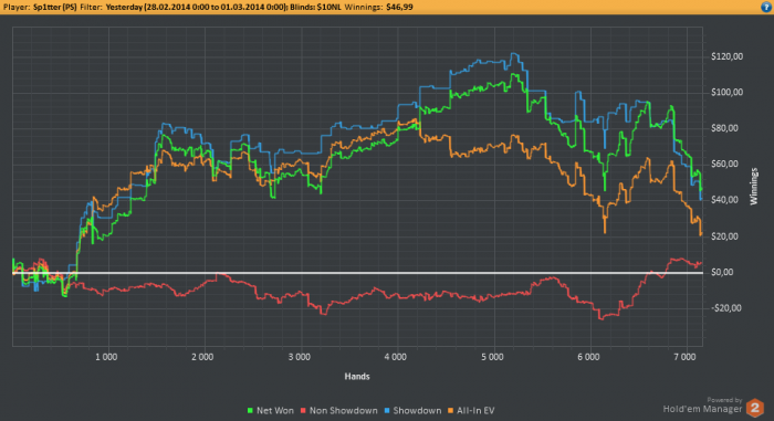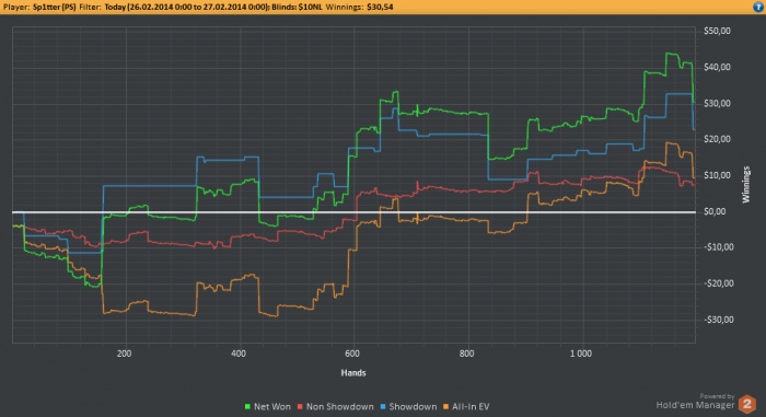 Марафон хотел начать еще позавчера, но совсем не было времени. Собственно, за эти два дня отыграл немного рук и неплохо плюсанул. Надеюсь продолжать в том же духе Вот график за эти два дня: