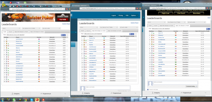 день одиннадцатый. долбанные мтт, задолбали блин, три раза вылетел имея >94% на флопе, и еще меня больше всего вводит в тилт, когда, допустим выставляемся АД в 99, стандарт, ничего особенного, я ловлю Д на флопе, и или 9 на ривере или стрит докручивают, даже проигранные 80 на 20 не так бесят, хз че делать. поэтому мало сыграл основные снгшки