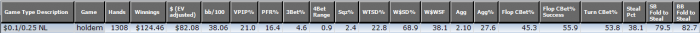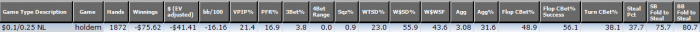 SB: $53.96 - VPIP: 46, PFR: 25, 3B: 4, AF: 1.8, Hands: 296