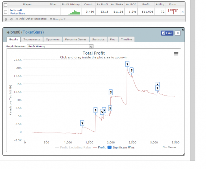 И так, всем привет. Я le_brun0, мне 20 лет, я тоже с Львова и я люблю бухать, тусить, клубы и всякую безсмисленую херню. Бухаю настолько часто, что решил вести блог с AndrewKoval для того что бы себя мотивировать к игре больше чем полагаеться и прекратить тусить. Дела плохи, так как заливал бр несколько раз. Буду стараться не залить больше. И так... буду играть снг до 4,50 и дешевые мтт до 5,50. С выводами и стриком и просадкой в казино (куда больше никогда не вернусь) на старзах БР 700$ - думаю должно хватить. Теперь никаких выводов и переводов друзьям к выполненой цели! Цель на следующих 30 дней набить бр 2к. Цель до конца года набить 30к. Буду плотно гриндить, и думаю что получиться) Отчитываться планирую раз в 2 дня, катать от воскресения до четверга каждый день минимум по 8 часов по 10+ столов. И так гл мне.. и поехали;) Вот график за все время, надо будет обнулить и начинать все с чистого листа!