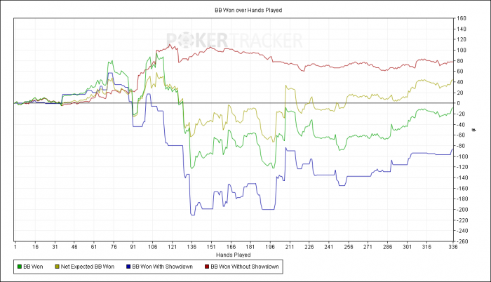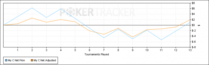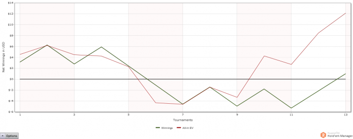 Разхождение по ев больше 50 бб, и это за какие то несчастные 13 турниров. Я боюсь представить какая разница будет на дистанции в 1000 и более турниров.