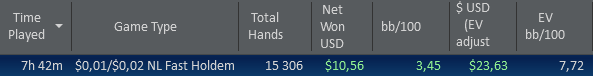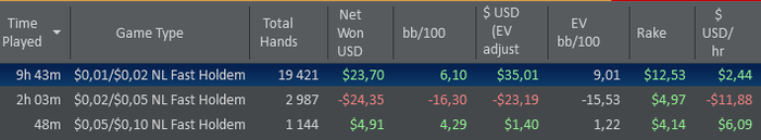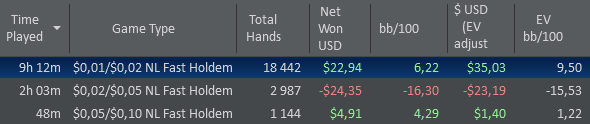 Занимался с тренером, играл нл5 в слабый плюс, пробовал нл10, залез на нл25, проиграл стек, пошел нл50, снова залил стек, рискнул на нл100 и потерял бр Пошел на остатки лудить на ставки, где успешно все слил. Сейчас есть около 40$ на старзах и до четверга буду играть зум нл2, затем снова нл5, 10-12 столов и плодотворная работа с тренером, ему пока не сказал про свои похождения, да и не стоит ему знать