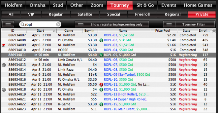 — Таблица лидеров будет строиться по принципу TLB PokerStars, следить можно на странице ROPL.