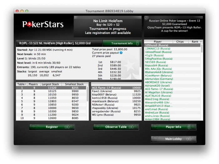 — Таблица лидеров будет строиться по принципу TLB PokerStars, следить можно на странице ROPL.