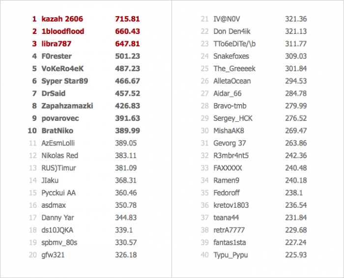 Актуальная таблица лидеров