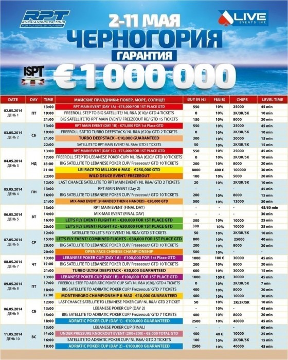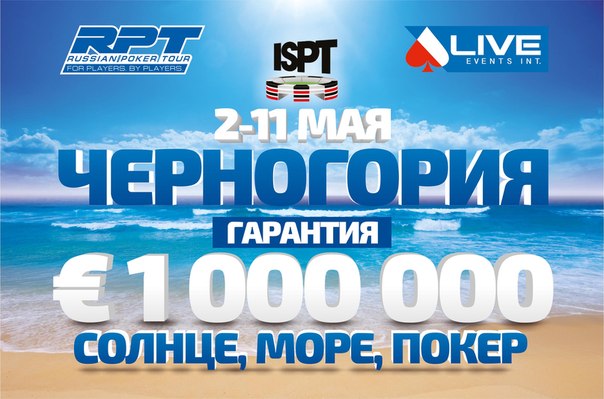 RUSSIAN POKER TOUR, LIVE EVENTS & ISPT! 2 -11 мая, Черногория! Гарантия более 1.000.000 Евро Совместный этап 3 международных турниров!