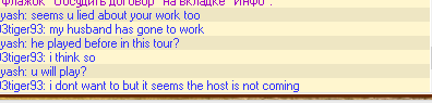 В процессе беседы я выяснил, что ему срочно надо на работу. Я согласился. Мы долго ждали хоста и когда он пришел, оппонент поменял свое решение и мы продолжили играть. Входе последующей беседы выяснилось, что он оставил свою жену доигрывать.
