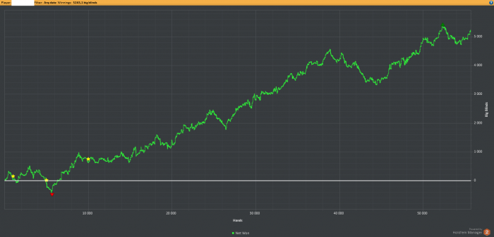 Теперь немного о настоящей ситуации: вроде и выигрываю, но ошибок много; катаю крайне мало. С моим BR'ом раньше уже играл бы NL50, но сейчас хочу первым делом убрать технические изъяны и начать наигрывать нормальное количество рук.
