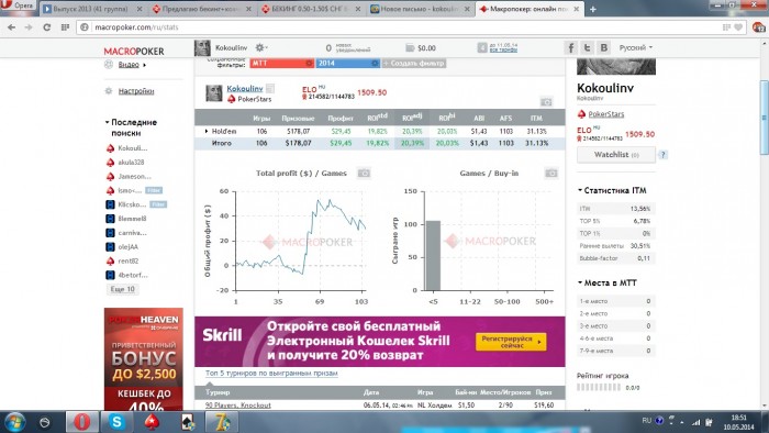 Таких, чтоб особо глубоких проходов по турнирам не было потому, что неуверенно начинаю себя чувствовать на стадии глубокого ИТМ.
