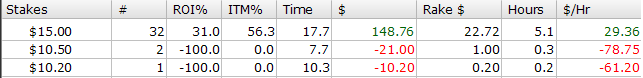 Неделю не отписывался о результатах. Не было настроения, плюс дикий завал с учебой. С момента последнего поста я набил БР для 15-ого лимита, но игра там сразу не пошла: залил весь профит, и когда надо было спускаться на лимт ниже, я, все же, решил продолжать играть 15ки, чтобы не терять опять время на прохождение 7ок и, если что, опять депнуть. Плюс, конечно, немного тильтовал, играл 15ки турбо и турбо шутауты, несколько раз залезал на 30 лимит, БР колебался в районе 30-300$, но в конце ГСЧ начал поддаваться, и, к моему везению, мне удалось выйти из этого небольшого даунсвинга, до того, как закончились деньги на счету. БР сейчас 470$, что вполне комфортно для 15 лимита регулярок. Да-да, получаю ачивку "игра не по БР", так что еще 1 штраф. В общем, пока не добью БР до 600, буду играть 15 лимит обычные ХА, шутауты, NBI и 7 лимит турбо шутауты. И отныне, чтобы не было недельных перерывов в постах, буду в конце каждого игрового дня выкладывать отчет.