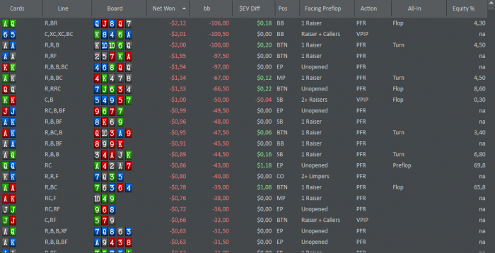 4. Проверь линии своего розыгрыша постфлоп. Особенно те, где играешь с передачей инициативы: бет-бет-чек, чек/колл-чек/колл..., и т.д.