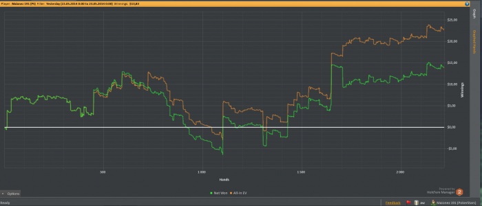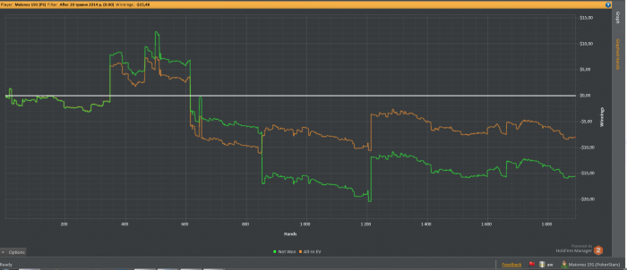 Год назад играл нл50,потом долгое время играл нл25,много кешаутил.В начале осени пришлось срочно вывести все средства и возможности играть в покер вообще не было.В марте была попытка снова возобновить игру,решил начать с нл25 зум.Отыграл примерно 15к рук в 0,снова пришлось прекратить игру.Отметил для себя,что поле подросло за пол года.Сейчас нужны деньги,наскрёб последних 60$и решил замутить марафон