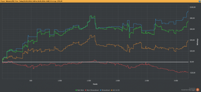 До недавнего времени катал безответственно, уделял мало времени теории и практике, катал по 5-6к рук в месяц. Одним словом, плавал как какашка по разным румам, плюсовал минусовал и выводил бр.