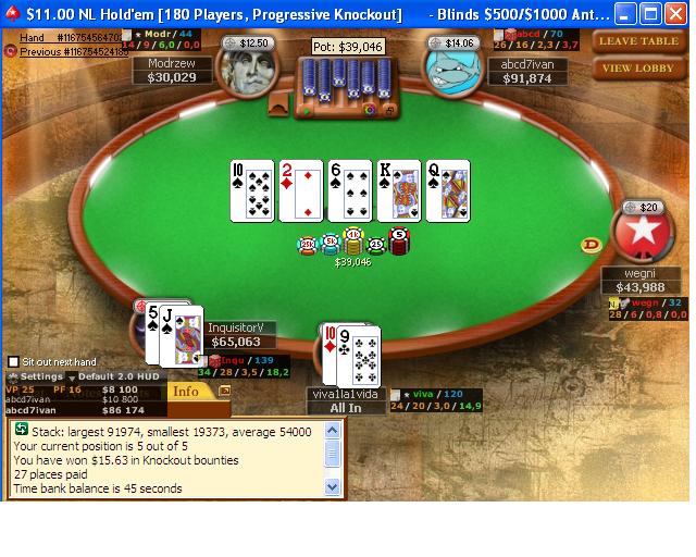 18-45 27.5$ 4 max - оверлей был 200$, сразу же набил 3.5 стартовых, но потом 1010<AA по 45бб, в ситуации где вроде не отскочить