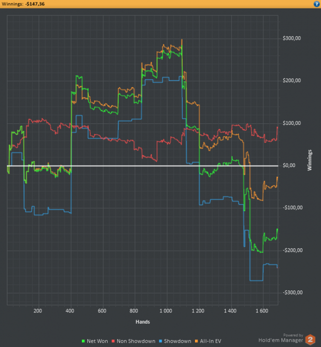 QQ ALL!!! Покером занимаюсь уже года 4, прошел путь от фрироллов до NL1k. Последний год испытываю огромные проблемы с тильтоустойчивостью и мотивацией, как результат спуск, а точнее стремительное падение до NL100. Плюс к этому мало занимался теорией(мало это еще слабо сказано). Постараюсь наладить свое психологическое состояние и игру, думаю ЭТОТ дневник мне частично поможет. В данный момент играю на PS, FR, BSS, NL100. Прошлый месяц тильтовал, но меньше обычного: