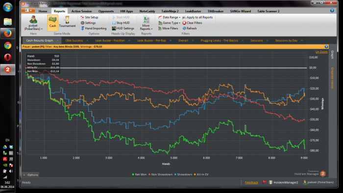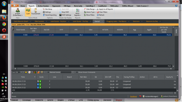 Ну вот. Это моя вторая попытка занести/завести блог. У меня, на самом деле, только один вопрос - как Вы анализируете свою игру? Просто я знаю, что уж уровен нл2 я точно перерос, но мои 12bb/100 на nl2, плавно перетекают в полный залив на nl5. При этом, по ощущениям, эти лимиты не особо ощущаются. (При этом спроси меня как он анализирует свою гру на nl5 - я бы послал его нах, просьба не применять данный прием ко мне)