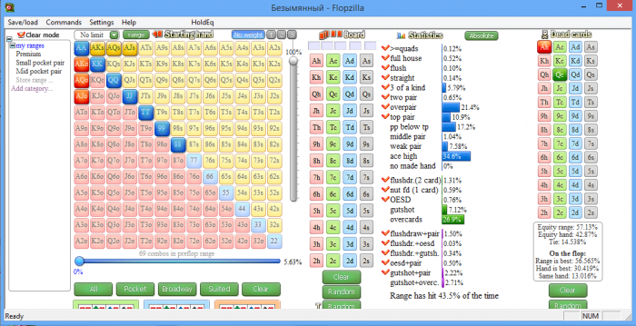 - При выборе диапазона оппонента, если у тебя нету статистики на игрока, тебе необходимо прнинимать за вводные данные то, что происходит чаще.