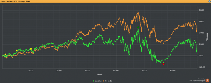Моя самая длительная сессия длилась около 6 часов. За это время было сыграно примерно 7к рук.