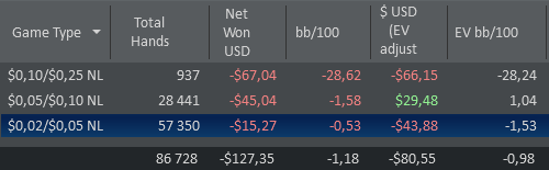 Еще стоит отметить, что последние 2 месяца я начал стремится к более сбалансированной игре в пассивном стиле, и даже начал играть без хада. Но разницы я не особо заметил. Винрейт на нл5 остался точно таким же. А на нл10 по прежнему проблемы. Просто буду тренировать пассивный стиль, а не стиль игры по красной линии. Думаю и так и так можно.