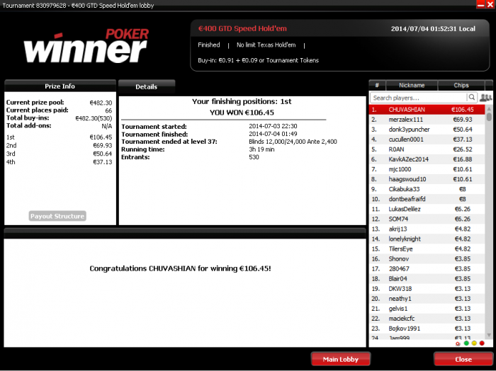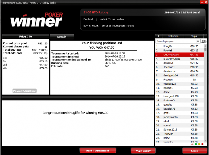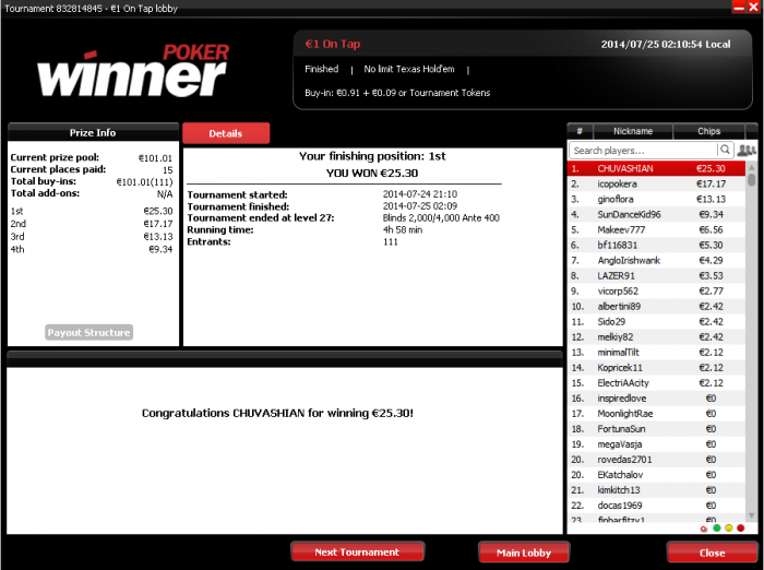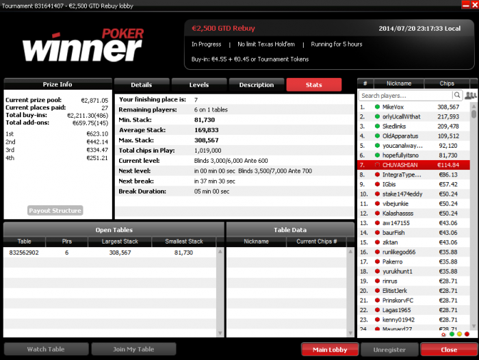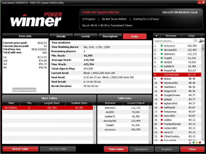 все не получается закрепиться выше 200 евро тяжело конечно пережить когда перезжают на предфиналках и финалках, а в каком-нибудь ON TAP за 1 евро отдаст(5 часов игры)))))
