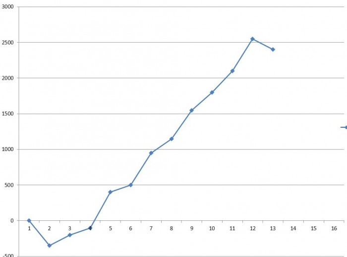 +300 руб. (просадка до -1500 руб, всё из-за непоставленых вовремя стопов)