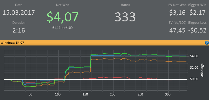 Итого, 20 долларов в подарок, 50 долларов на счету, быстрые столы NL SH и два часа в день на покер....пока что, это все, что есть
