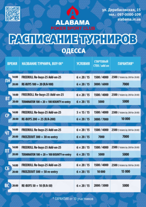 31 июля в 18:00 состоится открытие покерного клуба "Алабама" в г.Одесса.