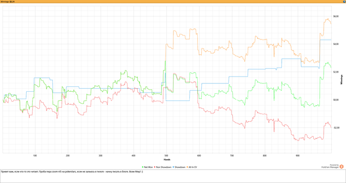 Всем, привет! Я пытаюсь играть микролимитный ZNLH SH на PS, хочу зарабатывать этим на жизнь, но не прилагаю достаточно усилий как для игры, так и для обучения. Блог создаю с целью обрести мотивацию и новые знакомства. Пока что всё.